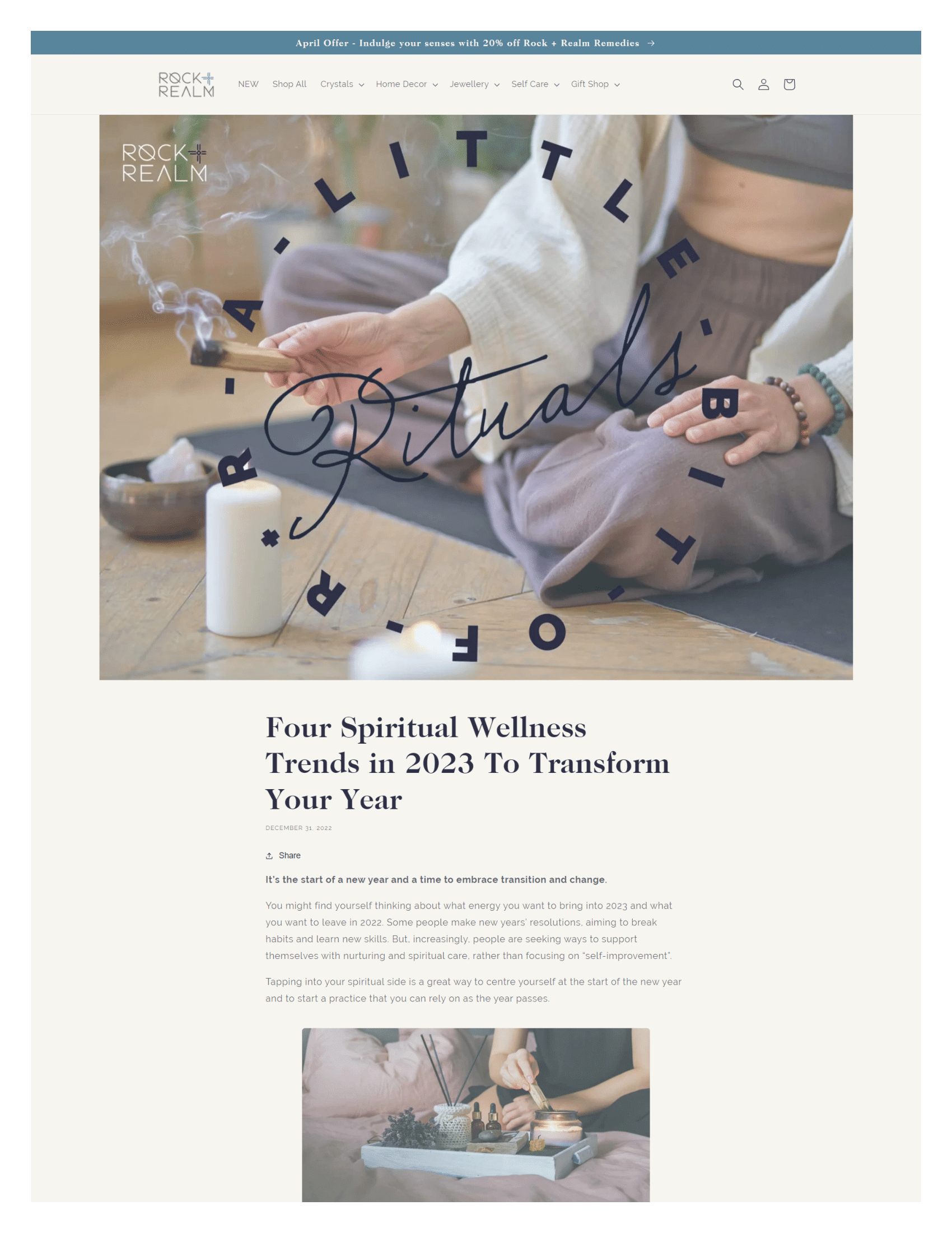 Getting the tone perfectly right in this blog took a bit of delicacy. New Year messaging can be negative, shaming, and focusing on things to change- this is definitely not the vibe of Rock & Realm! The blog needed to highlight supportive, gentle, nurturing solutions for everyone who wanted to boost their mental and spiritual wellbeing.